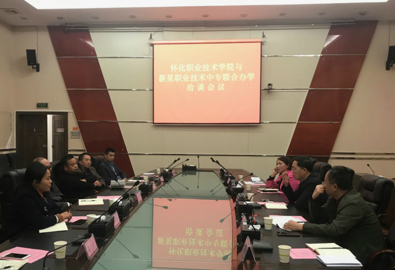 胡书记一行在新晃县委书记梁永泉、县委常委、宣传部长彭智华、副县长姚海燕等人陪同下,来到了县教育小区实地考察了县职业技术中专新校区的建设情况,随后在县委会议室就校县战略合作进行了全面洽谈。会上宣传部长彭智华、县教育局局长杨配泉分別介绍了县教育工作情况,县职业中专校长蒲少云介绍了县职中的办学情况,表达了与怀化职院校校合作的迫切希望。